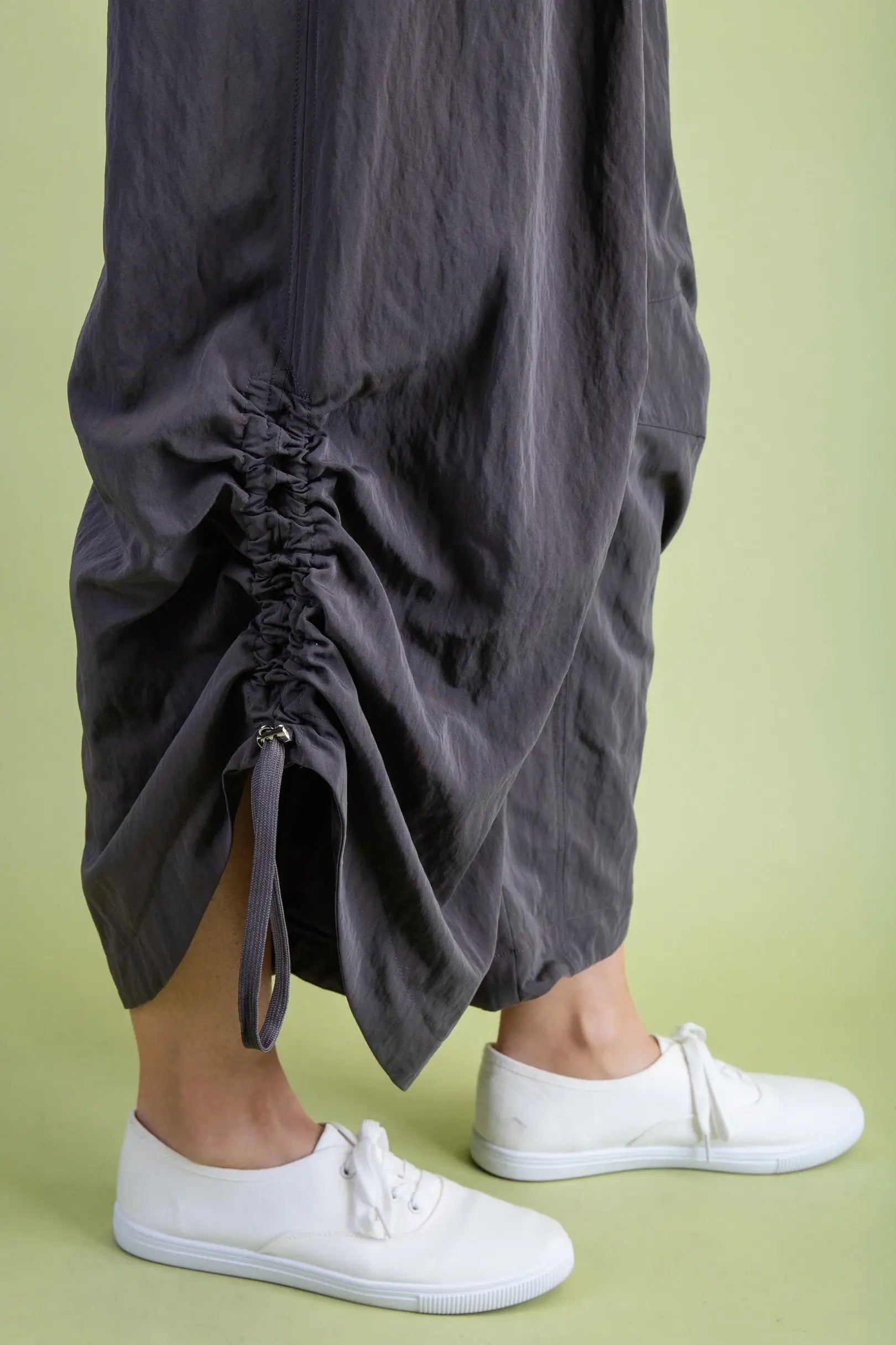 Elevate your wardrobe with the GiGio Charcoal Jumpsuit, designed for effortless style and comfort. Featuring a sleeveless button-front silhouette, it offers a modern touch while the smocked elastic waist ensures a flattering fit. Adjustable cinch ties at the hem let you customize the look for versatile wear, making this jumpsuit perfect from day to night.