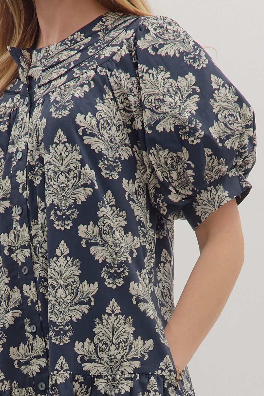 The London Dress brings effortless charm to your everyday wardrobe with its delicate botanical print and thoughtfully designed details. Short puff sleeves add a playful touch, while the pintuck yoke and layered collar create visual interest and flattering structure. A front button closure makes dressing easy, and practical side pockets keep your essentials close. Lined throughout for comfort and confidence, this woven mini dress transitions beautifully from casual outings to weekend adventures. A versatile piece that celebrates both style and function.